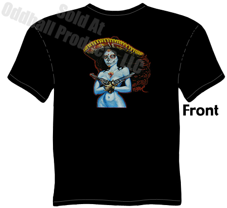 - Artwork is on front of Chica Termino T Shirt.