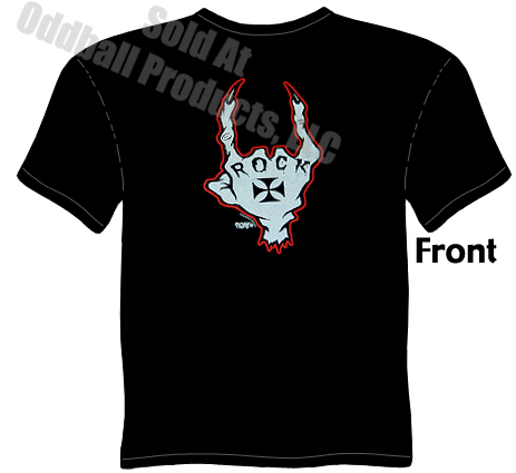 - Rock T Shirt artwork is silk screened on a black Tee.