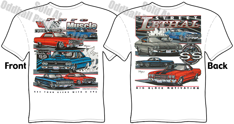 - Artwork is on back of 64-70 SS Chevelle T Shirt, and a large design on front.