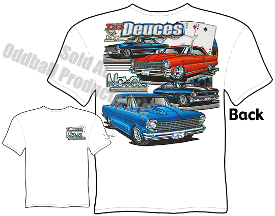 - Artwork is on back of 65-72 Nova T-shirt. Small design on chest.