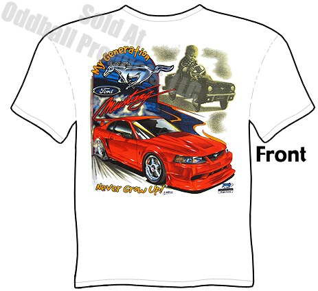 - Artwork is on front of Mustang T Shirt.